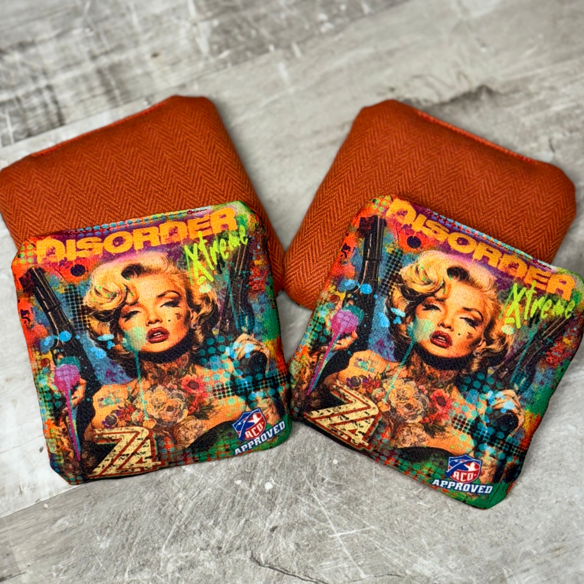 Disorder is the newest series in the 724 bagger co. Lineup. This is the ever popular herringbone material (with fusible liner installed) paired with the MAYHEM fast side to play at speeds of 9-6.